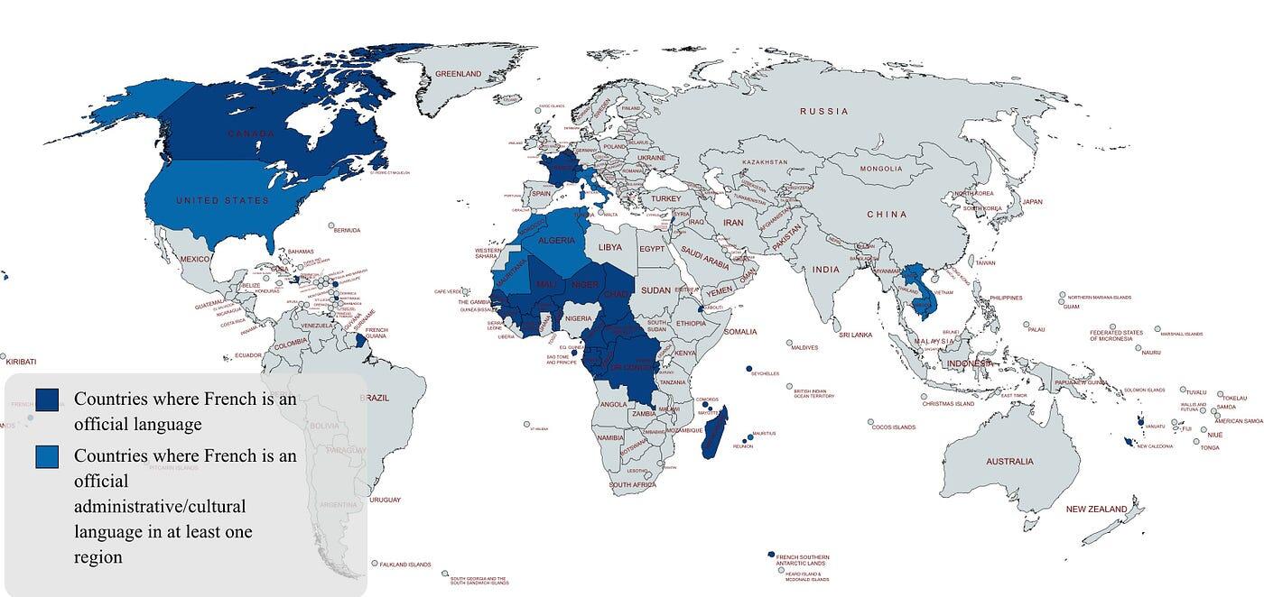 Η Γαλλία είχε στο παρελθόν αποικιακή παρουσία σε διάφορες περιοχές. Αυτό εξηγεί γιατί τα Γαλλικά αποτελούν σήμερα επίσημη γλώσσα σε πολλές αφρικανικές χώρες, όπου χρησιμοποιούνται τόσο στη διοίκηση όσο και στην καθημερινή επικοινωνία των πολιτών.