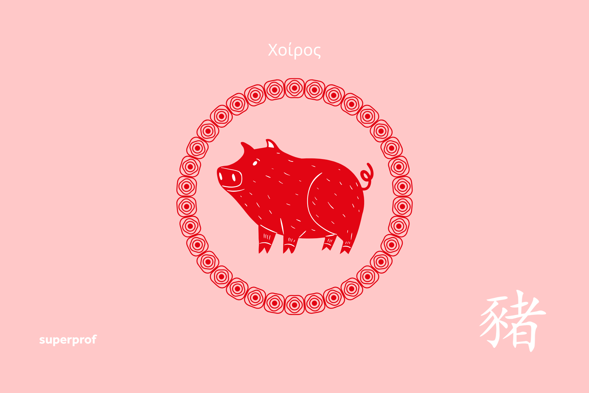 | Χοίρος | 猪 | Γενναιόδωρος, αισιόδοξος, απολαυστικός |
